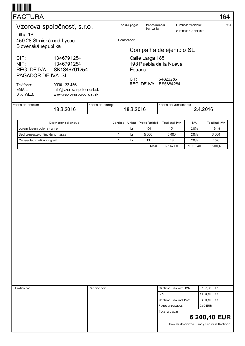 - Ve formuláři faktury vyberte jazyk: Španielčina
